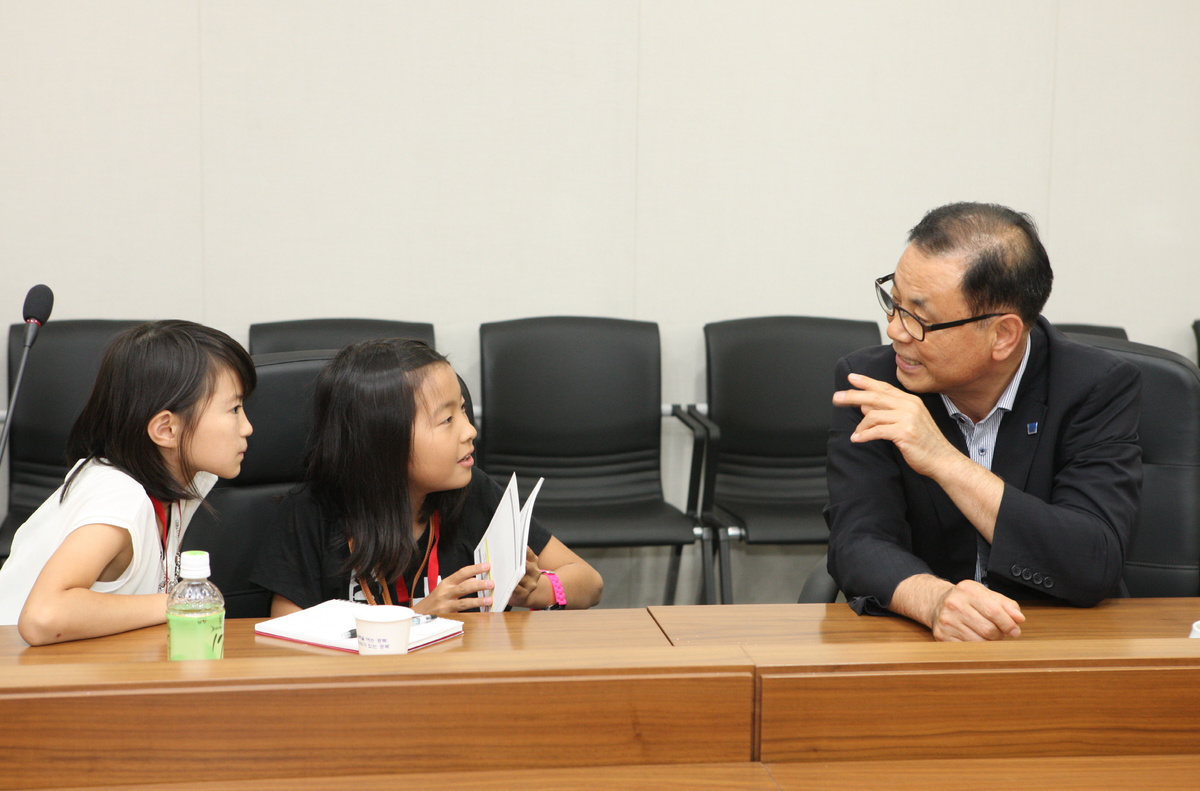 | ↑↑ 이상욱 경주 부시장, 일본 도요오카시 초등학생과 담소를 나누고 있다. |