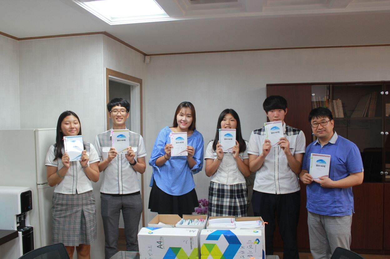 에코노트는 이면지를 활용하여 무심코 버려지는 종이를 재활용함으로써 환경을 지키고 학용품이 없는 제3세계 친구들이 마음껏 공부할 수 있도록 도와주고자 만든 것이다. 이에 무산중·고등학교 전교생들은 마음 한 뜻을 모아 나눔 활동에 동참하게 되었다고 한다.
