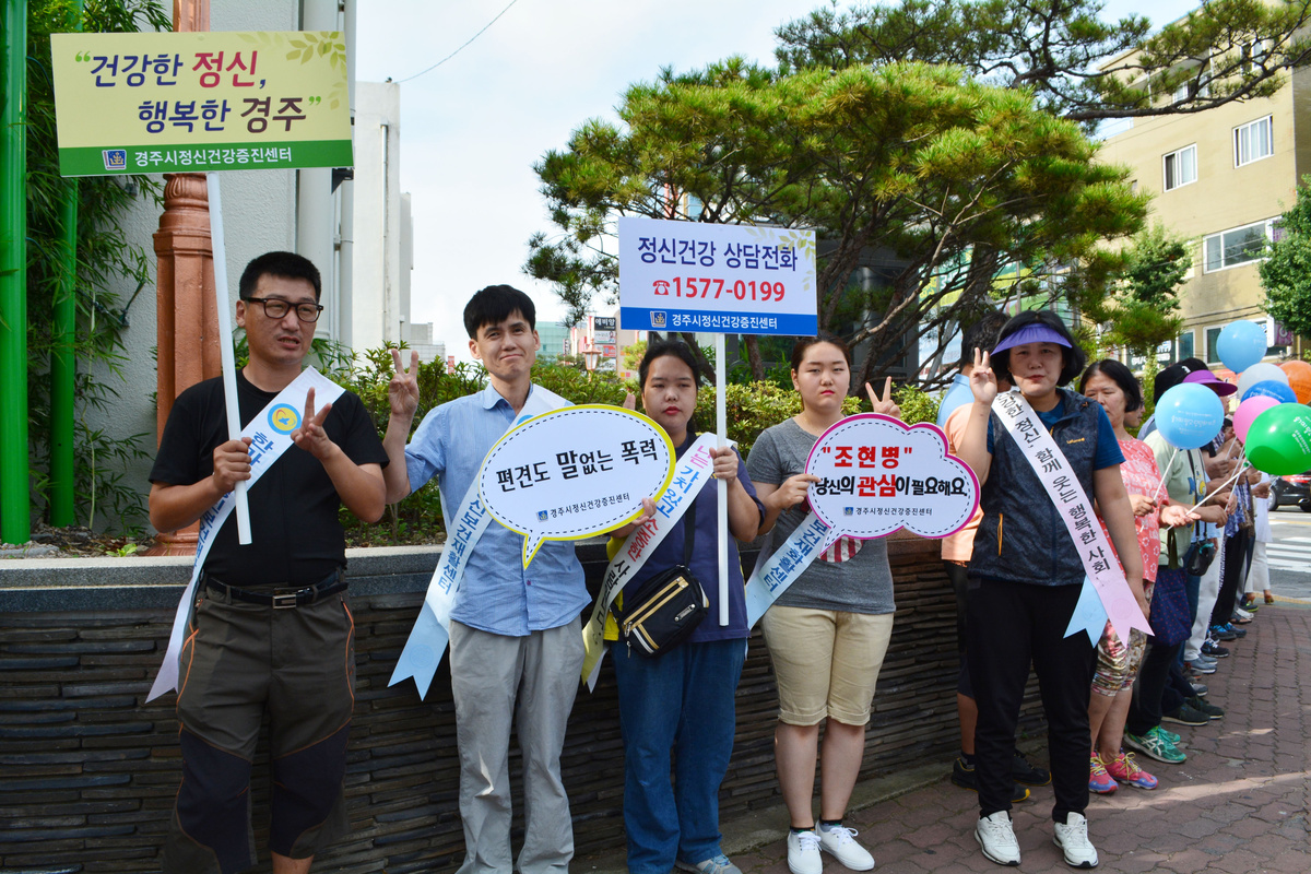 참여기관으로는 경주시 보건소, 경주시정신건강증진센터, 경주정신건강상담센터, 한마음정신보건재활센터, 어울림 연합으로 ‘편견도 말없는 폭력’, ‘Beautiful 경주인, 정신건강으로부터’ 등의 피켓을 들고 거리 캠페인을 통해 지역주민에게 정신장애인에 대한 관심을 당부했다.