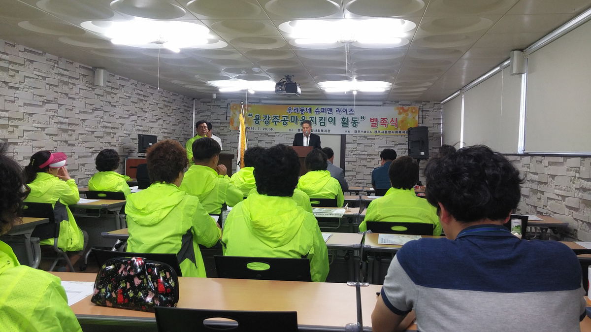 [이재영 기자]= 경주시종합사회복지관(관장 김종우)에서는 지난 20일 복지관에서 건전 마을문화 형성을 위한 주민조직화사업 일환으로 ‘용강주공마을지킴이’ 발족식을 가졌다.