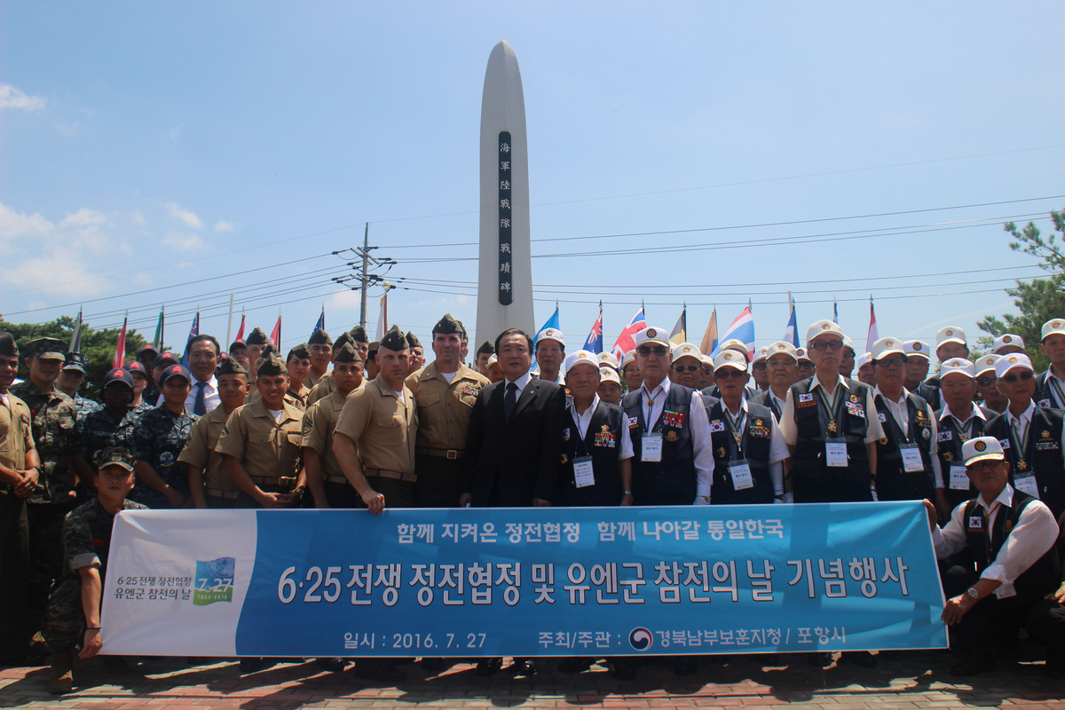 [이재영 기자]= 경북남부보훈지청(지청장 박창표)은 27일 오전 11시, 포항시 송라면에 위치한 한미해병충혼탑에서 6․25전쟁 정전협정 및 유엔군 참전의 날 기념행사를 개최했다.