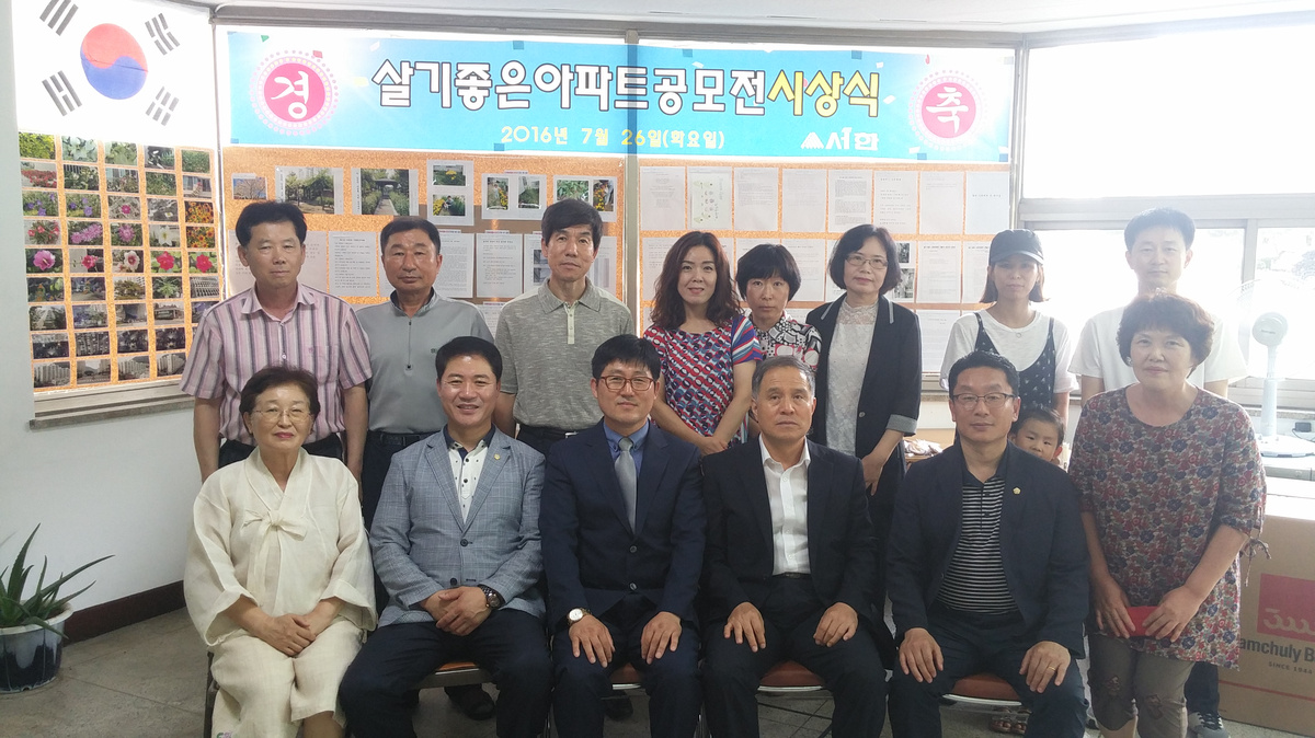 서한아파트에서는 지난 6월 15일부터 7월 14일까지 약 한달 간 공모를 통해 사진, 시, 수필, 아이디어 등 41건의 작품이 접수되었으며, 지난 15일 자체심사를 거쳐 입상자(최우수1, 우수 2, 장려 4)를 결정했다. 입상자들에게 상장과 상품(압력솥, 자전거, 선풍기 등 100만원 상당)이 수여됐다.
