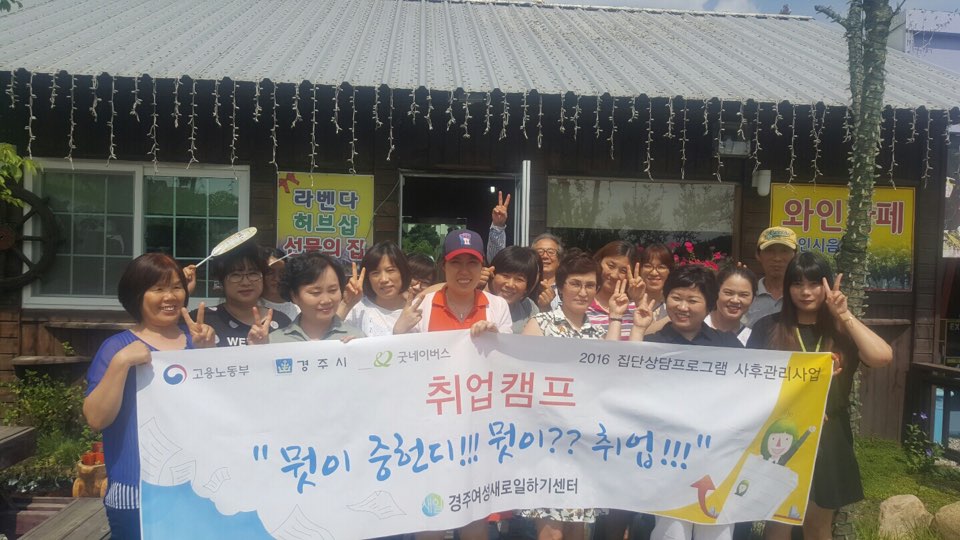 [이재영 기자]= 경주여성새로일하기센터는 지난 26일, 2016년 집단상담 프로그램 사후관리사업의 일환으로 프로그램 수료자 및 취업을 희망하는 센터등록 구직자 15명과 함께 경주시장애인종합복지관과 경주힐링 테마파크를 탐방하는 취업캠프를 진행했다.