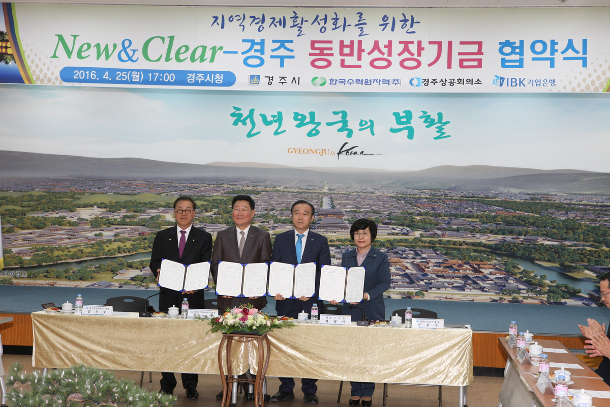 이 기금은 지난 4월 25일 체결된 한수원. 경주시. 경주상공회의소. IBK기업은행의 지역경제 활성화를 위해 ‘New&Clear-경주 동반성장기금’ 협약에 따라 진행되는 특별한 금융지원 사업이다.