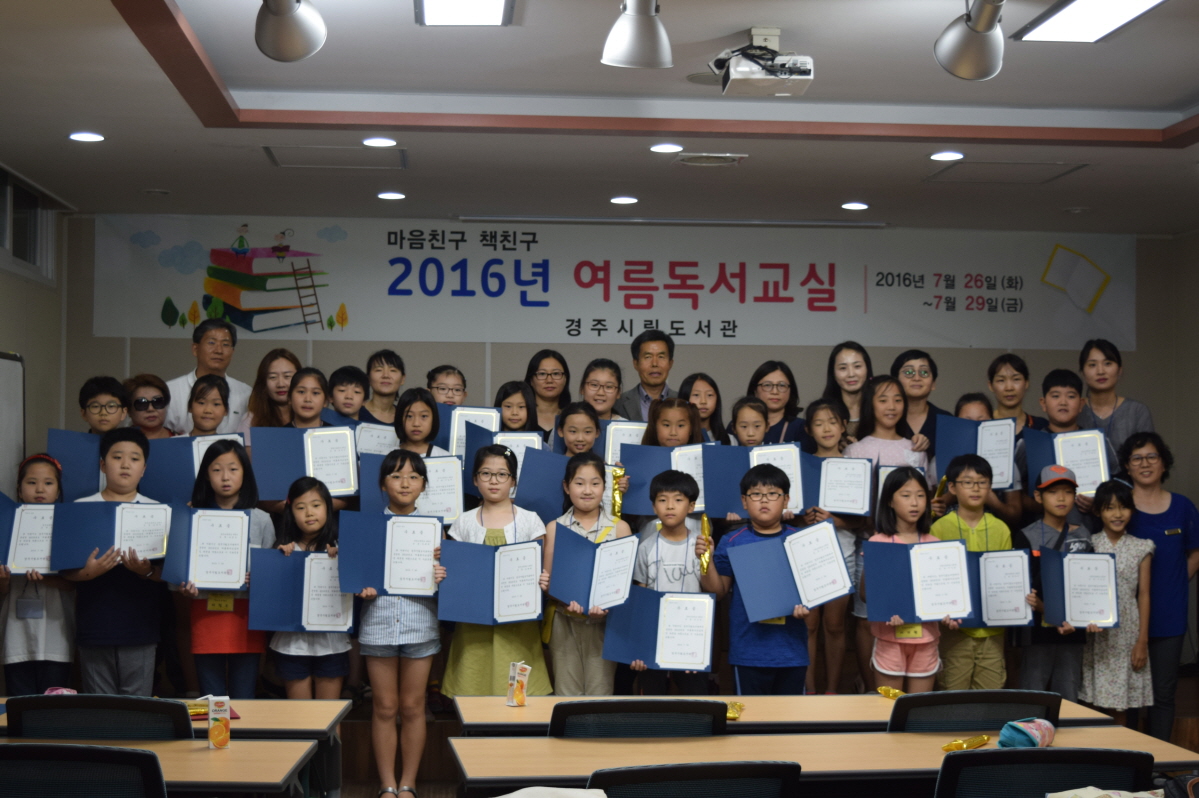 [이재영 기자]= 경주시립도서관은 지난달 26일부터 29일까지 4일간 운영한 ‘2016년 여름독서교실’ 수료식을 가졌다고 4일 밝혔다.