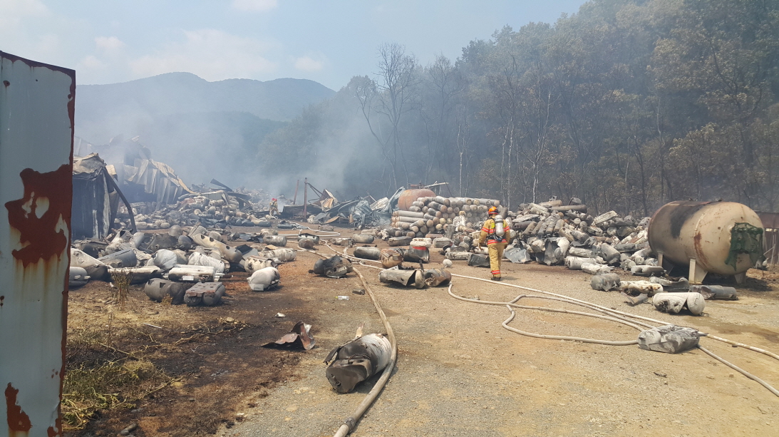 경주소방서, 안강읍 두류리 가스통 더미 화재 진압