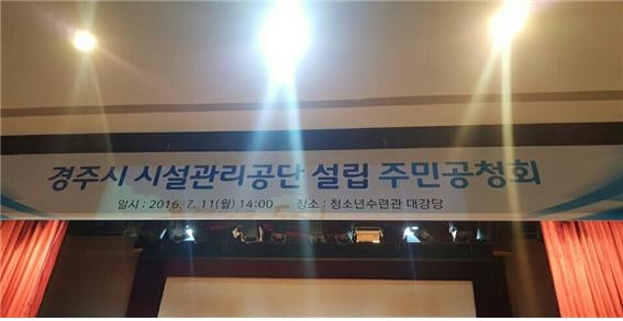경주시는 지난달 11일 청소년수련관 대강당에서 시설관리공단설립 관련한 다양한 시민의견 수렴을 위해 공청회를 가지고 최근들어 시설관리공단설립에 속도를 내고 있다.