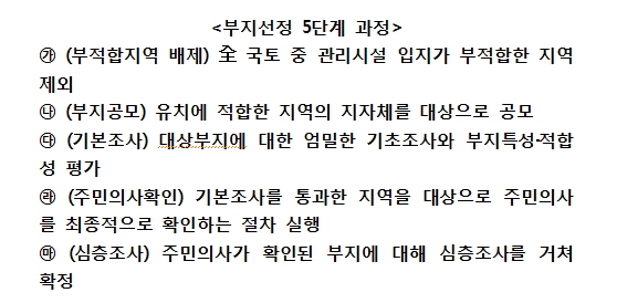 또한 지난 6월 8일 방폐물 관리 국제심포지엄에서 OECD/NEA, IAEA 등 국제기구 전문가들응 해외사례를 고려하면 부지선정까지 12년 설정은 적절한 것으로 평가했다.