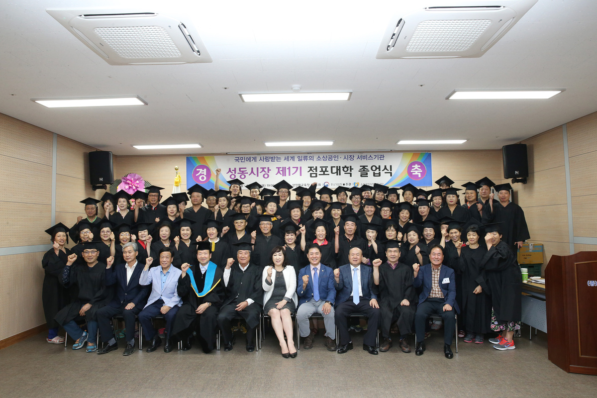 올해 첫 졸업생을 배출한 성동시장 점포대학은 소상공인시장진흥공단에 상인대학 교육을 신청하여 지난 6월 2일 입학식을 가졌고 매주 화. 목요일 1일 2시간씩 소상공인시장진흥공단이 추천한 전문교수로부터 기본. 심화학기 각각 22시간씩 총 44시간의 교육을 실시했다.