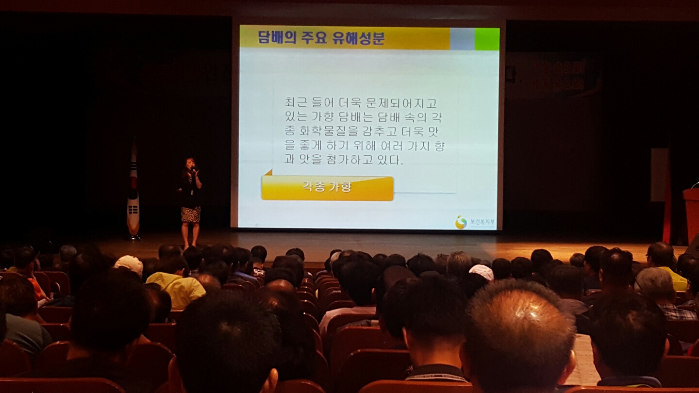 지난 6월 보건소와 택시회사간 ‘담배 냄새없는 쾌적한 택시만들기’를 위한 업무협약의 후속으로 버스, 화물등 운송종사업자를 대상으로 ‘2016년 운송종사자 보수교육’을 활용해 흡연의 위해성을 교육하고, 일산화탄소 측정과 담배관련 모형물을 전시하여 간접흡연을 체험하게 했다.