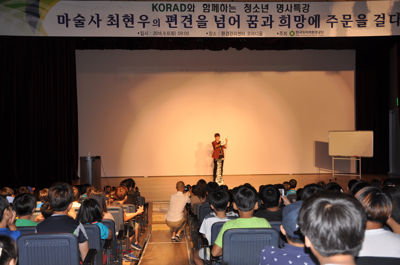 [이재영 기자]= 한국원자력환경공단(이사장 이종인)은 중저준위방사성폐기물 반입으로 발생하는 지원수수료를 활용해 KORAD와 함께하는 청소년 명사특강을 진행한다.