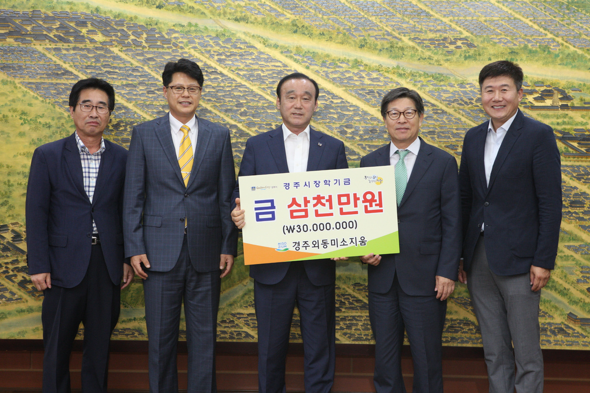 [이재영 기자]= 경주시 외동읍 입실리 소재 미소지움 아파트는 지난 9일 경주지역의 인재육성과 교육 경쟁력 강화를 위해 장학기금 3,000만원을 (재)경주시장학회에 기탁했다.