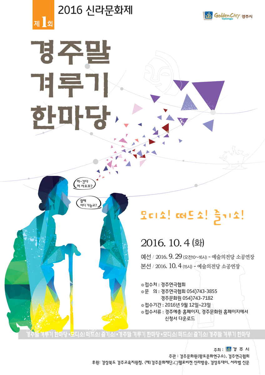 정겨움이 느껴지는 이 구호는 ‘경주말 겨루기 한마당’의 캐치프레이즈다. 경주문화원(원장 김윤근)과 경주연극협회(회장 최원봉)는 2016 신라문화제의 부대행사로 ‘경주말 겨루기 한마당’을 내달 4일(화) 경주예술의전당 소공연장에서 개최한다.