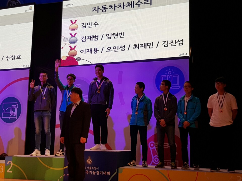 이 대회에서 신라공업고등학교(교장 조인호)는 자동차차체수리 부문에서 은메달 1 (3학년 김재범), 동메달 2 ( 2학년 이재용, 2학년 최재민 ), 옥내제어 우수상 1 (3학년 이수언)의 성과를 거뒀다.
