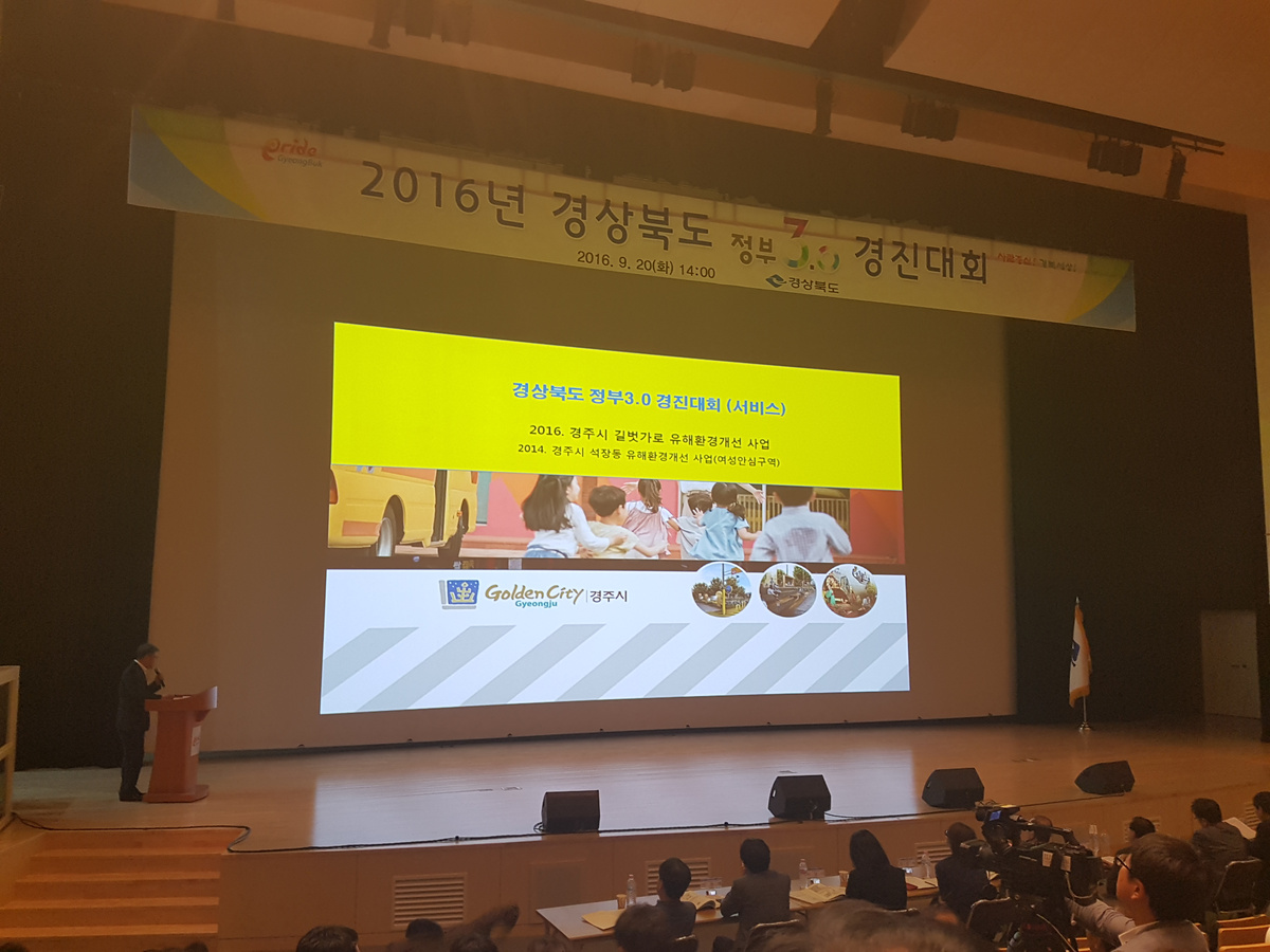 [이재영 기자]= 경주시는 지난 20일 경북도 주관으로 열린 정부3.0 경진대회에서 ‘길벗가로 유해환경개선 디자인 사업(도시디자인과)’ 추진 사례를 발표해 동상을 수상했다.
