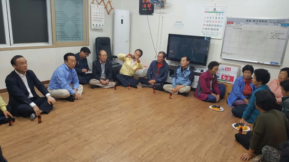 김관용 경북지사는 지난 25일 내남면 부지리에서 지진 피해복구 현장을 찾아 1박을 하면서 주민들을 격려하고 지역 여론을 청취하며 고충과 애로사항을 직접 듣는 등 현장 민심수습을 했다.