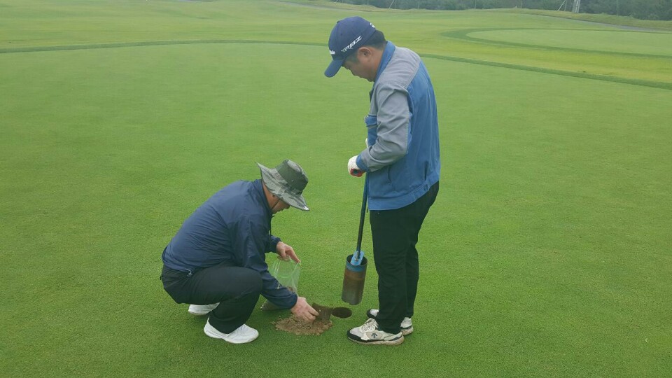 상반기와 하반기에 연 2회 건기(4~6월), 우기(7~9월)에 실시하는 이 검사는 골프장에서 살포하는 농약으로 인한 토양오염과 수질오염을 예방하기 위한 것으로 골프장 내 그린과 페어웨이의 토양 및 연못수, 최종유출수를 채취해서 경북보건환경연구원으로 보내 농약 잔류량을 검사한다.