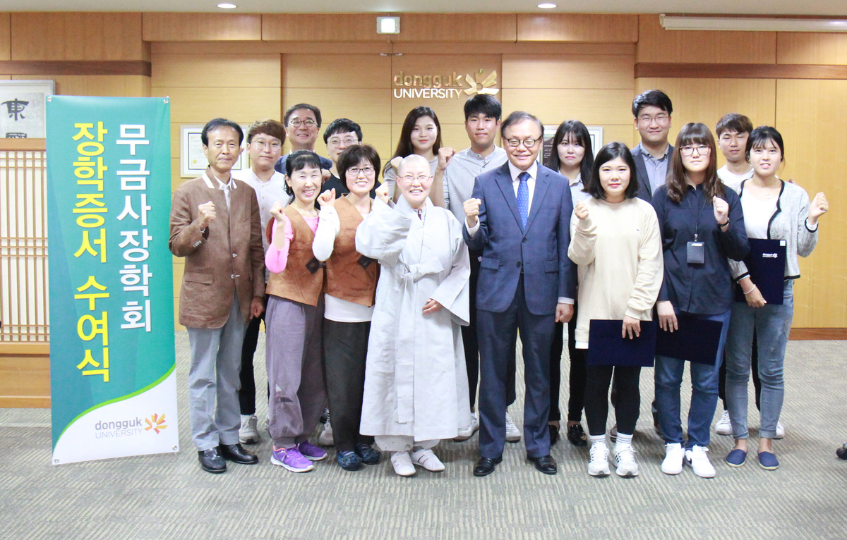 무금사 장학금은 구미 무금사 무이 스님과 신도들이 불교인재양성과 구미 출신 동국대 학생들을 지원하고자 동국대 경주캠퍼스에 2016년에 조성한 장학금으로 이번에 무이스님과 신도들이 동국대 경주캠퍼스를 방문해서 처음으로 장학금을 수여했다.