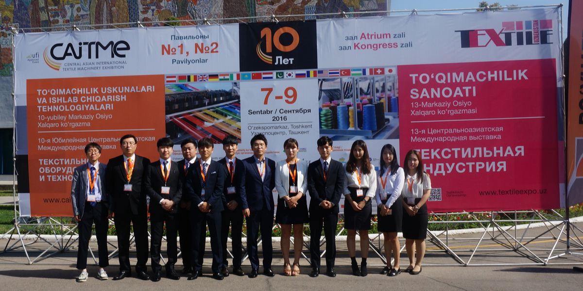 동국대학교 경주캠퍼스 GTEP사업단 학생들은 지난 9월 6일부터 9일까지 우즈베키스탄에 개최된 2016 중앙아시아 국제섬유기계전시회(CAITME 2016)에 대구∙경북지역 유망 중소기업 8개사와 함께 참가하여 한국섬유기계연구원이 주관한 한국관에서 다양한 제품 홍보 및 제품 수출 상담 등의 업무를 지원하였다.