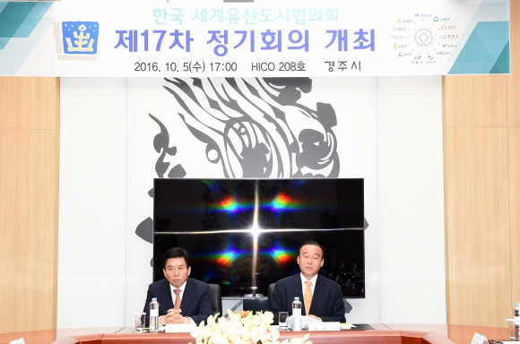 [이재영 기자]= 한국 세계유산도시협의회(회장 최양식) 17차 정기회의가 5일 오후 5시 경주 하이코 2층에서 세계유산도시기구 아시아. 태평양 지역총회와 연계하여 열렸다.