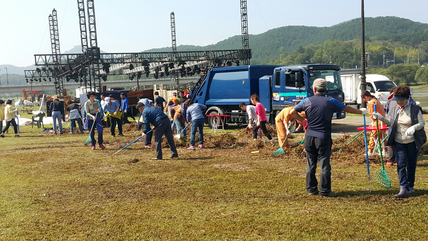 이어 오전 9시부터는 본격적으로 태풍으로 범람한 형산강 둔치 환경정비에 나서, 시 공무원 400명, 경주경찰서와 경북경찰청 400명, 군인 70명과 민간단체 등 자원봉사자 100명을 포함하여 1,000여명의 인력과 살수차 2대, 집게차 2대, 덤프(15톤) 4대 등 장비가 투입되어 복구작업에 열을 올렸다.