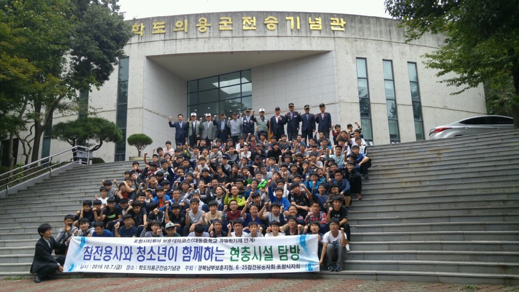특히, 이번 행사는 중학교 자유학기제와 연계하여 대동중학교 학생 140여명이 참여하며, 학생들은 포항시의 대표적인 현충시설과 관광코스를 체험함으로써 나라사랑하는 마음과 함께 우리고장을 사랑하는 마음을 동시에 기르는 데 도움이 될 것으로 기대된다.