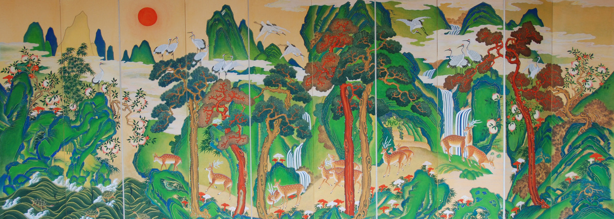 이철희 작가는 이번 전시에서 우리 그림 민화를 소개한다. 민화는 고고하지 않은 민초들의 눈높이를 가지고 있다. 예를 들면, 십장생을 그려 다복하고 장수하기를 바라는 소박한 소망을 표현한다. 이것을 길상화(吉祥畵)라고 하는데 여기에는 ‘길상’이라는 스토리가 가미되어 있다. 이 작가에 의하면, 민화는 다양한 이야기가 있는 행복한 그림이다. 그림마다 스토리텔링의 깊은 묘미를 느낄 수 있다.