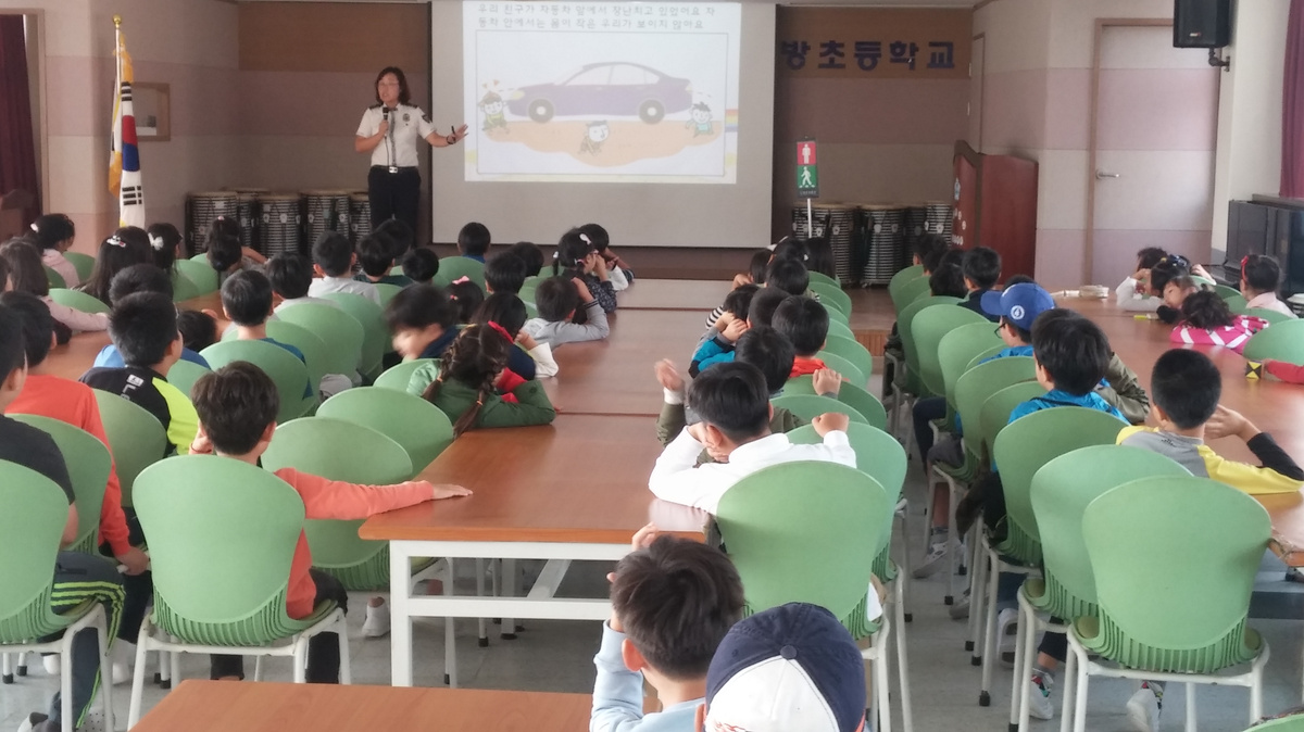 이날 교육은 초등학교 저학년 학생을 대상으로 안전하게 횡단보도 건너기 및 안전띠 꼭 매기 등에 대해 설명하고 관련 동영상을 보는 등 학생들의 눈높이에 맞춘 교통안전교육이다.