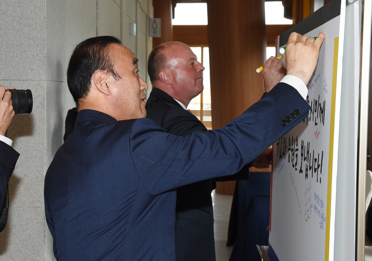 최양식 경주시장은 “한독 포럼에 오신 독일과 한국의 석학과 지도자 여러분을 환영하며, 이번 포럼으로 독일과 한국의 새시대를 열어가게 되길 희망한다”며 한국의 대표 역사도시 경주에서 포럼을 통해 시민들을 응원해준데 대해 감사로 화답했다.