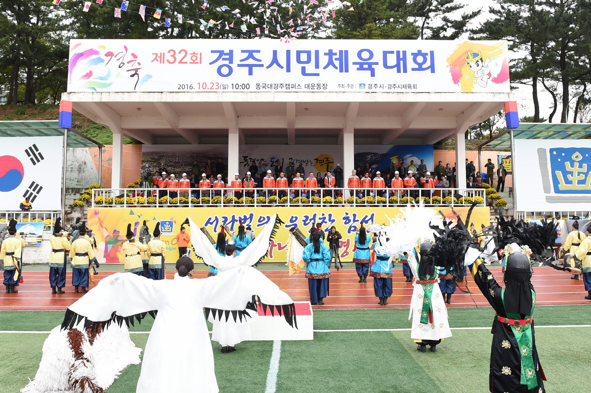 [이재영 기자]= 제32회 경주시민체육대회가 23일 동국대학교 운동장에서 최양식 경주시장, 김석기 국회의원, 박승직 시의장 및 도.시의원, 이대원 동국대 경주캠퍼스총장을 비롯한 기관단체장과 읍.면.동 선수단 등 경주시민 1만여명이 참석한 가운데 성황리에 열렸다.