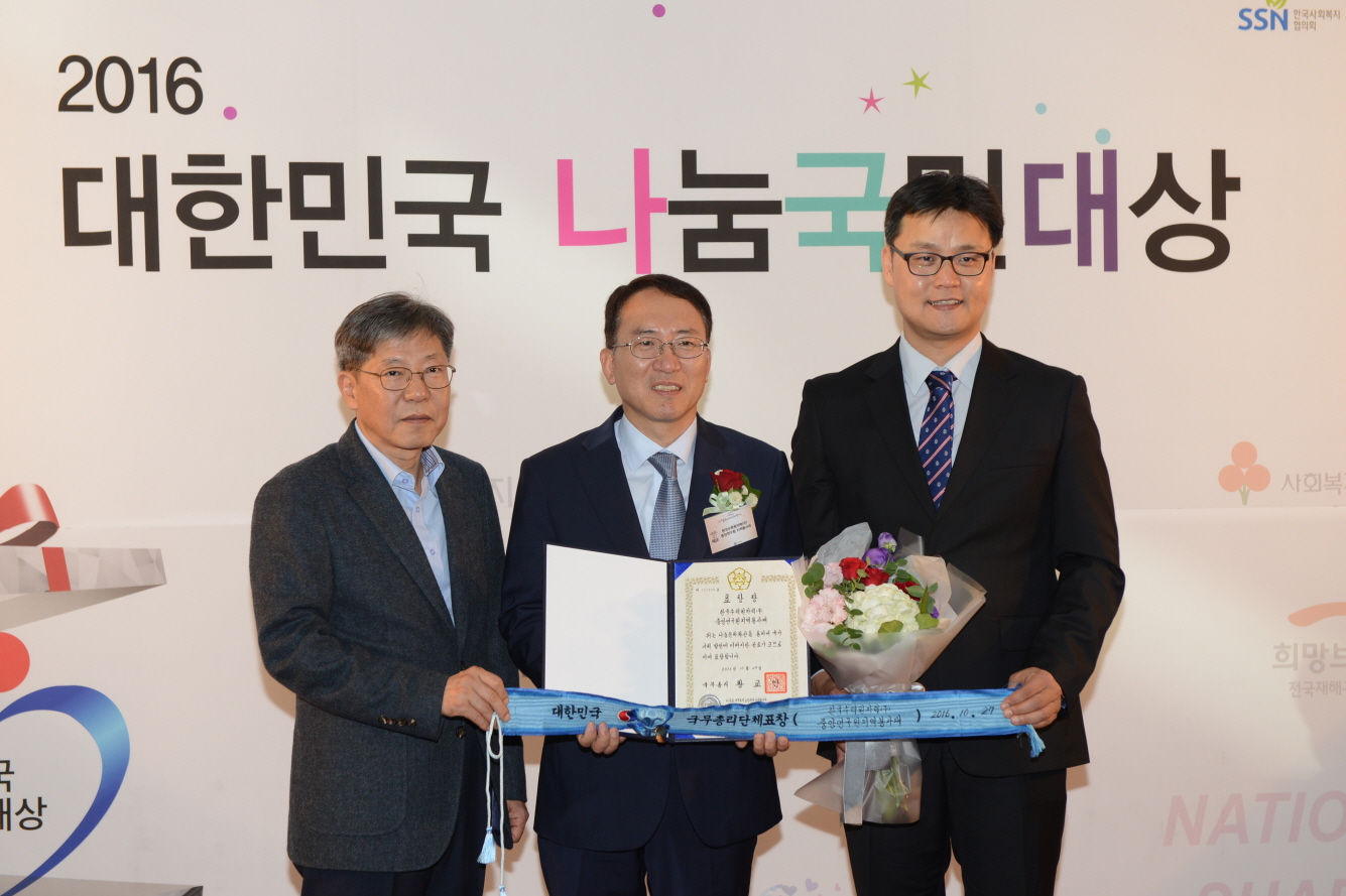 [이재영 기자]= 한국수력원자력(주)(이하 한수원) 중앙연구원이 27일 여의도 KBS 공개홀에서 열린 2016 대한민국 나눔국민대상 시상식에서 사회공헌분야 국무총리 표창을 수상했다.