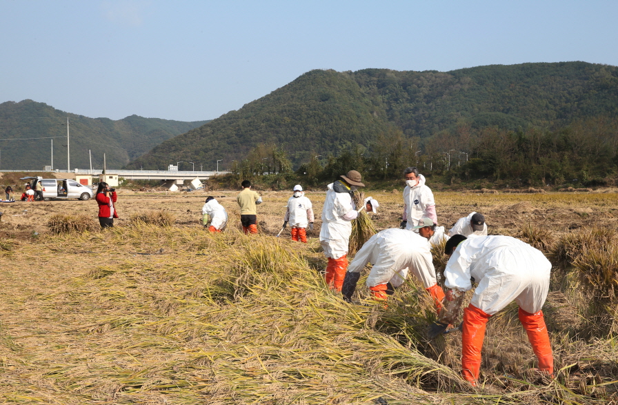 이날 일손돕기는 경주시의회 의원 및 의회사무국 직원 30여명이 양북면 구길리 일원 농가에 벼베기 및 각종 일손 돕기를 실시하고, 재해피해 농가를 방문하여 위로의 맘을 전했다.