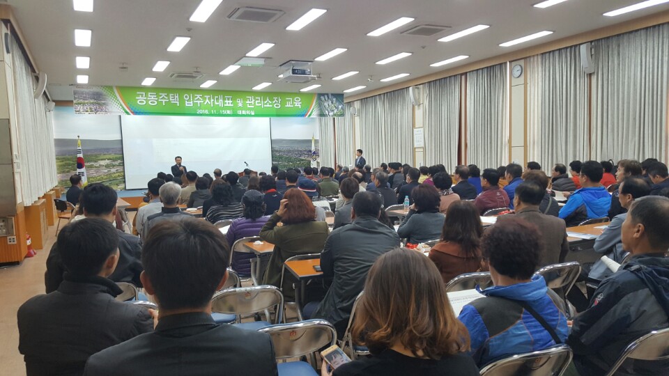 [이재영 기자]= 경주시는 15일 대회의실에서 관내 150세대 이상 공동주택단지의 입주자대표회장과 관리사무소장 등 150여명을 대상으로 공동주택 관리․운영 교육을 실시했다.