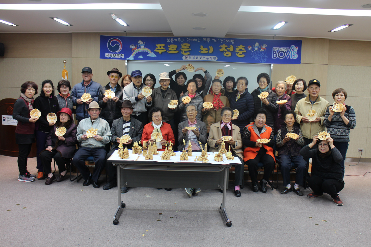 경북남부보훈지청은 지역사회와 연계하여 다양한 프로그램으로 매월 '푸르른 뇌청춘' 치매예방쉼터를 운영하여 고령보훈가족의 치매를 예방함으로써 건강한 노후생활을 영위할 수 있도록 노력하고 있다