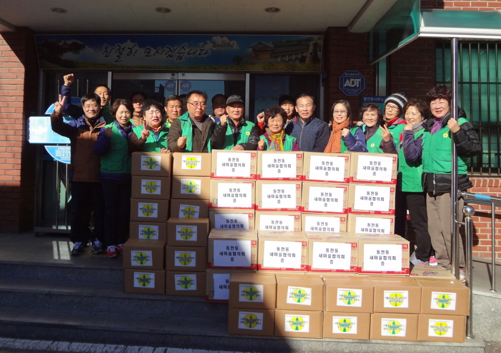 황석호 동천동장은 추운 날씨에도 어려운 이웃을 위해 묵묵히 봉사하는 새마을지도자와 부녀회원들께 감사의 인사를 전하고 격려하였으며 앞으로도 지역사회 사랑 나눔의 길잡이가 되어 살기 좋은 동천동을 만드는데 앞장 서 줄 것을 당부했다.