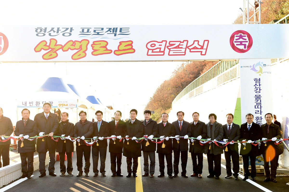 이날 행사는 형산강 물길을 따라 총 48억원(경북도 24억, 포항. 경주시 24억)의 사업비로 경주 강동면 유금리에서 포항 연일읍 유강리를 연결하는 7.8km 구간의 자전거길인 ‘상생로드’의 개통을 축하하고 지역 상생발전의 롤모델인 형산강 프로젝트의 지속적 추진에 대한 결의를 다지는 축제의 장이 펼쳐졌다.