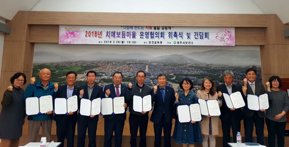 [이재영 기자] 경주시 보건소(소장 김장희)에서는 지난 26일 보건소 보건교육장에서 다함께 만드는 치매돌봄공동체 조성을 위한 ‘2018년 치매보듬마을 운영협의회’의 위원 13명에 대한 위촉식을 가졌다.
