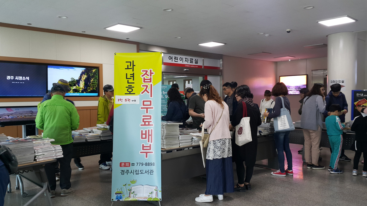 특히 과년호 잡지 무료배부는 중고도서의 재활용 및 도서에 대한 가치를 재인식시키고자 마련된 것으로써, 시립도서관 본관 로비에서 오는 14일 10시부터 12시까지 선착순으로 1인 5권씩 배부할 예정이다.