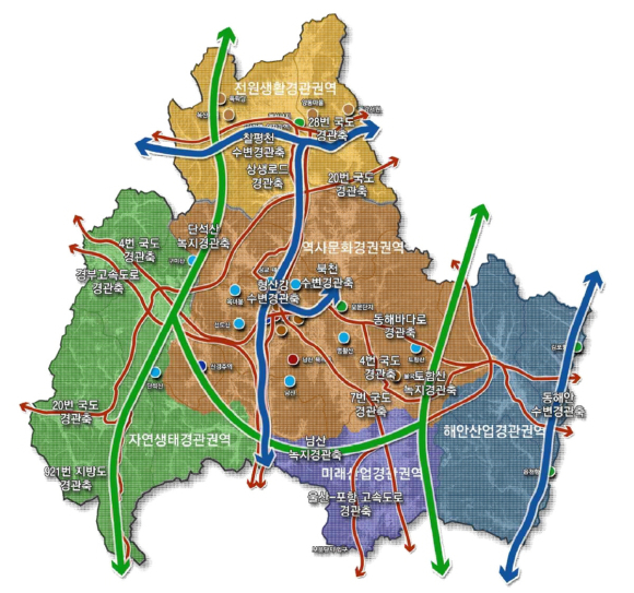 특히 경관 계획 수립 효과를 극대화하기 위해 중앙부처와 도 단위 예산지원사업과의 연계를 통해 다양한 경관사업을 추진하고 있으며, 경관사업들 간의 연계성 확보 및 지역 특성을 살릴 수 있는 창의적인 경관 형성에 주력하고 있다.