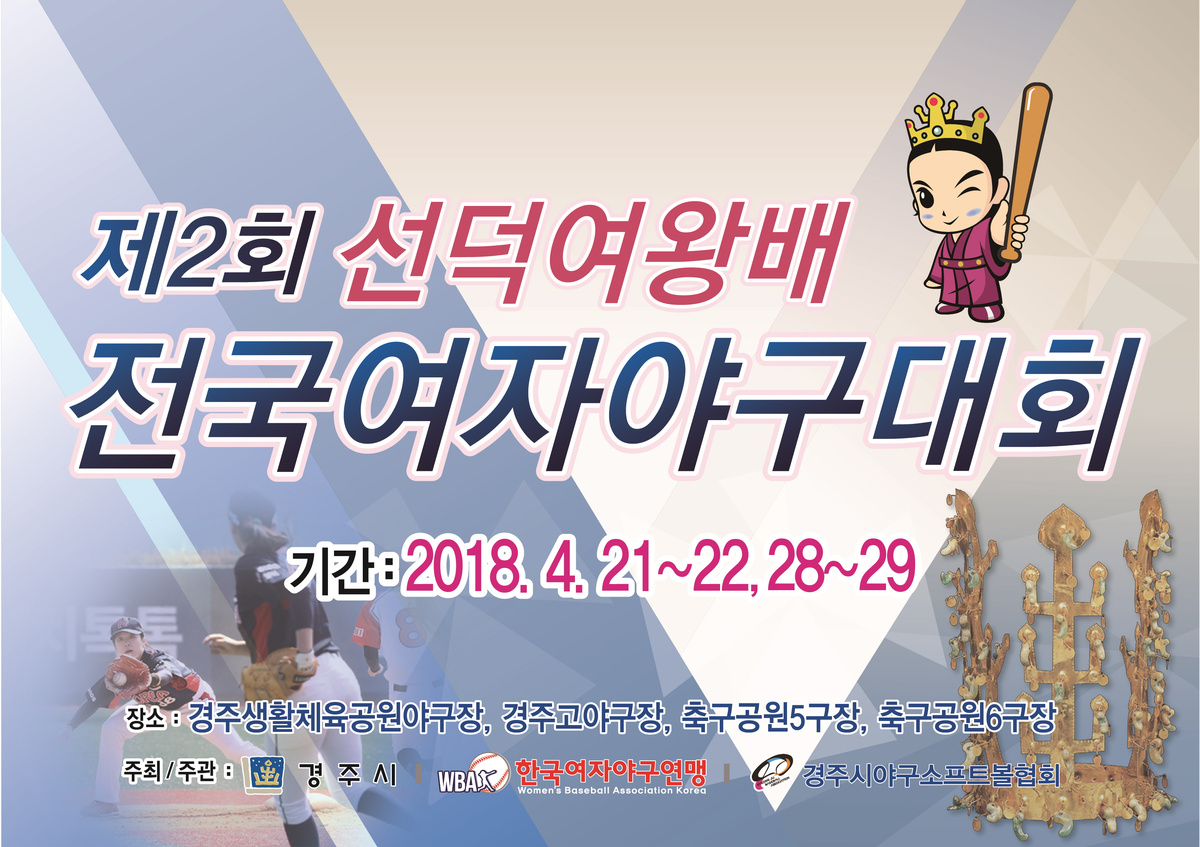 삼국통일의 기초를 다진 신라 최초의 여왕인 선덕여왕의 이름을 딴 제2회 선덕여왕배 전국여자야구대회가 오는 21일 경주시 축구공원 5구장에서 개막한다.