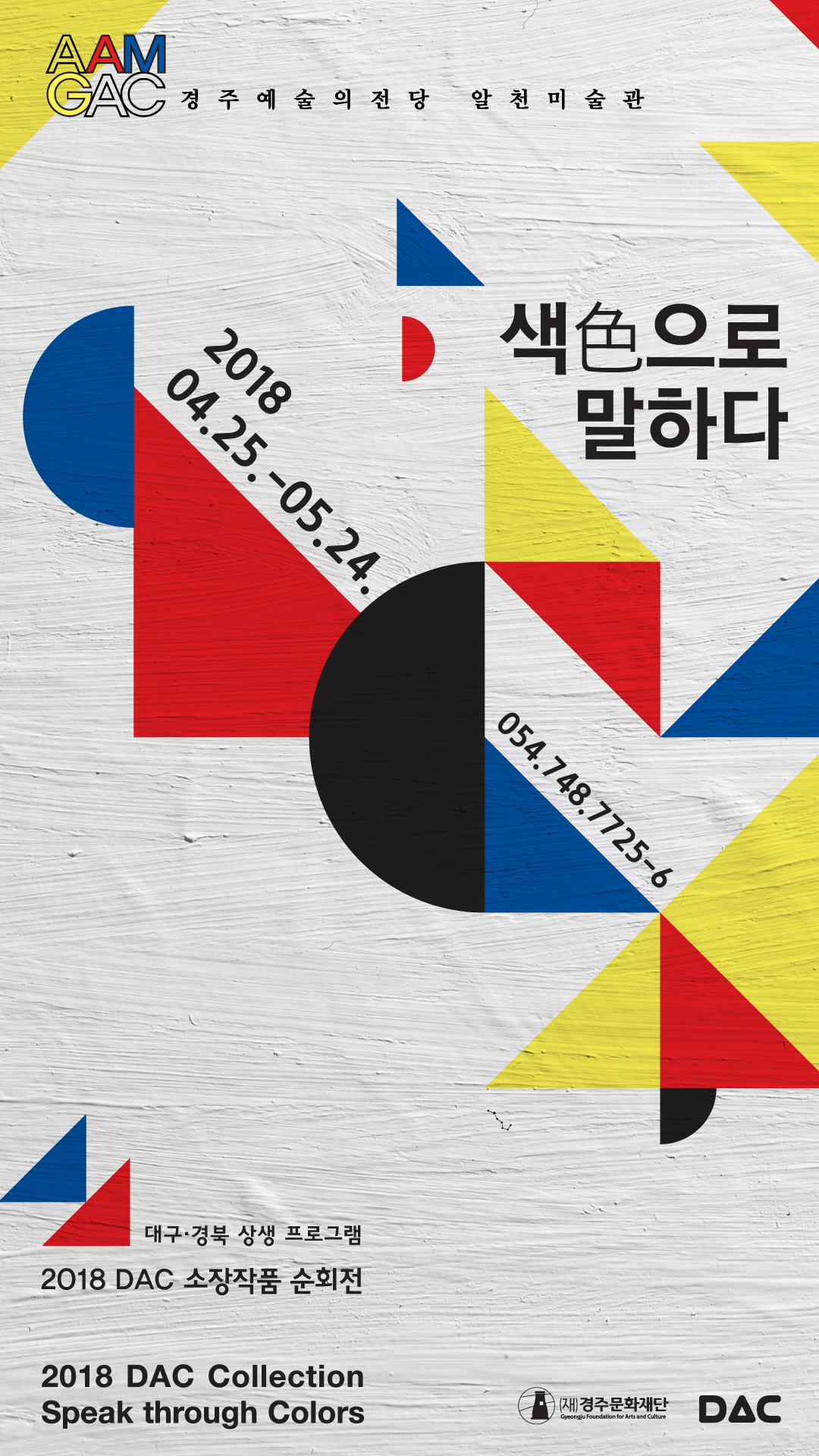 [이재영 기자] (재)경주문화재단과 대구문화예술회관은 오는 25일(수)부터 《2018 DAC 소장직품 순회전 : 색色으로 말하다》를 경주예술의전당 알천미술관에서 개최한다.