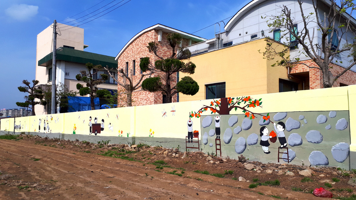 [이재영 기자] 경주시 천북면사무소(면장 임경석)에서는 지난 17일 칙칙했던 청사담장을 곤충채집과 감따기, 연날리기, 말뚝박기 등 동심을 불러일으키는 그림으로 새 단장해 이목을 끌고 있다.