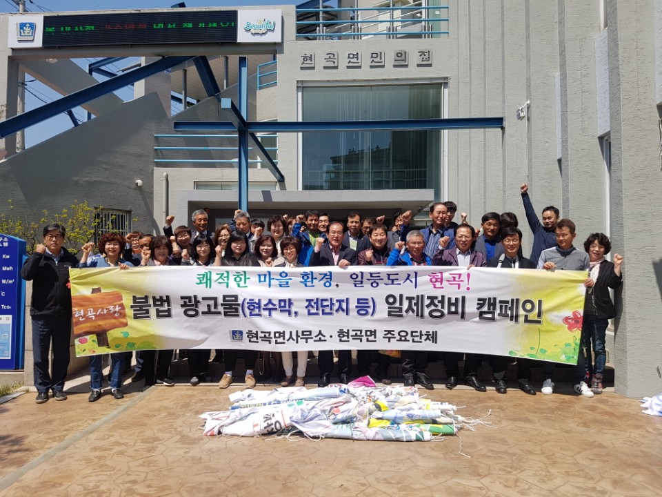 현곡면이 지속적인 단속과 철거를 시행하고 있지만 현수막 등 여러 형태의 광고물이 도로변, 상가, 학교․아파트․마을회관 벽면 등에 무단 첩부가 되고 있다. 이에 현곡면에서는 관내 6개 단체와 함께 상․하반기로 나누어 불법 광고물 일제정비 캠페인을 실시한다.