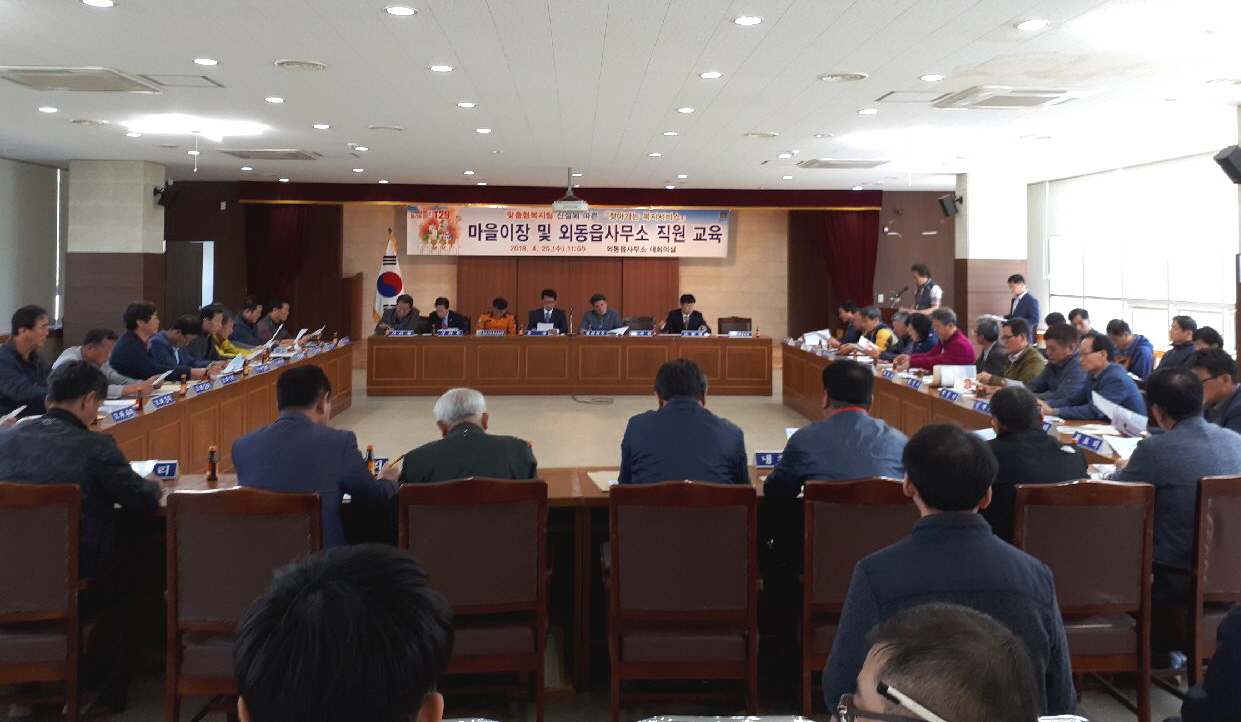[이재영 기자] 경주시 외동읍(읍장 임보혁)에서는 지난 1일부터 외동읍에서도 맞춤형복지팀을 운영하기로 함에 따라, 25일 읍사무소에서 맞춤형복지팀 신설에 따른 ‘찾아가는 복지서비스’에 대한 교육을 마을이장 및 직원을 대상으로 실시했다.