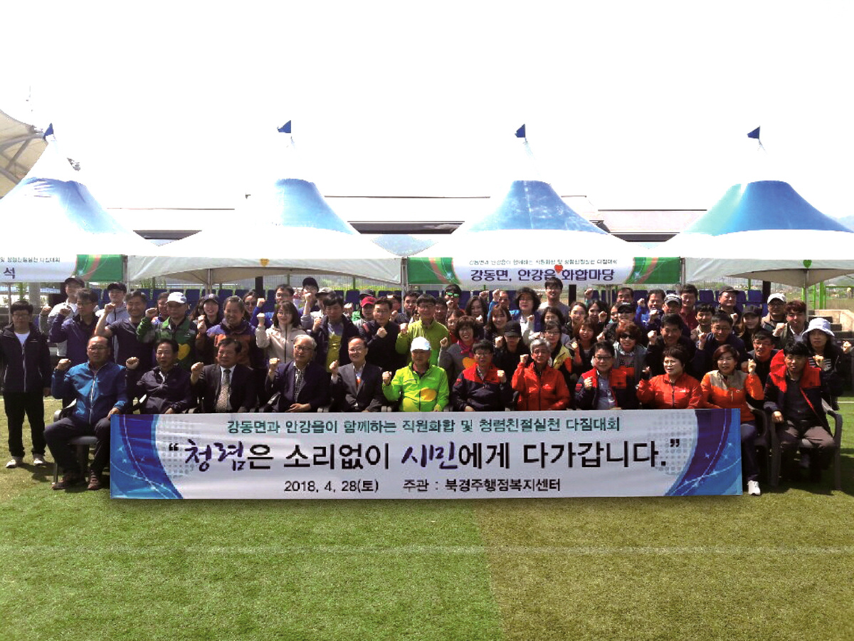 한편 직원들로부터 청렴결의문을 전달받은 공진윤 북경주행정복지센터장과 김영주 강동면장은 “우리 직원들의 청렴실천이 시민들에 대한 행복한 행정서비스로 승화되도록 오늘의 다짐대회를 계기로 지역의 발전에 최선을 다하겠다.”라고 말했다.