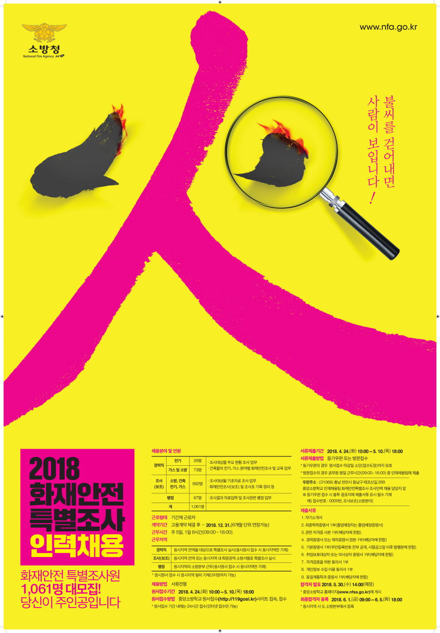 ‘사람이 먼저인 나라, 화재로부터 안전한 대한민국’을 목표로 추진되는 이번 기간제 근로자 채용은 소방청에서 국정과제인 화재안전특별조사를 추진하기위해 실시됐다.