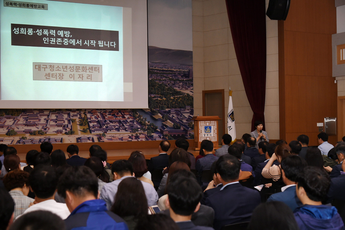 [이재영 기자] 경주시에서는 2일 시청 알천홀에서 직원들을 대상으로 직장 내 배려문화를 조성하고 성폭력을 예방하기 위한 소양교육을 실시했다.