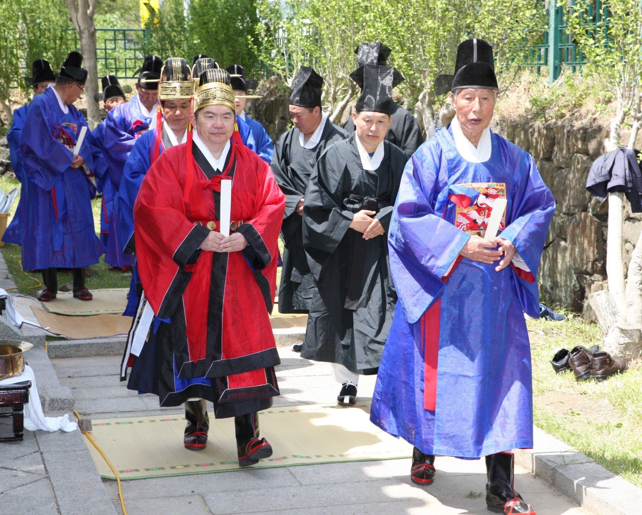 | ↑↑ 차성수 한국원자력환경공단 이사장(왼쪽)이 5일 이견대에서 열린 문무대왕릉 춘향대제에 초헌관으로 참여하고 있다. |