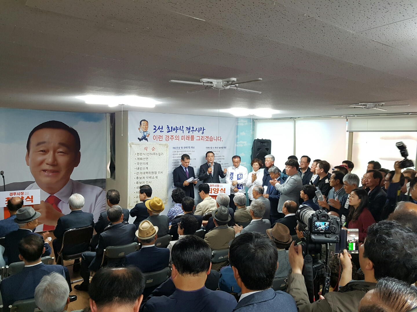 이날 개소식에는 시민과 지지자 등 내빈을 포함해 약 2,000여명이 참석한 가운데 최양식 예비후보는 "선거출전의 일성으로 공천에 대한 의혹과 불신을 뛰어넘어 이제는 이러한 문제로 시간을 낭비할 수 없으며, 경주발전 여기서 멈출 수 없다”고 강한 의지를 표명했다.