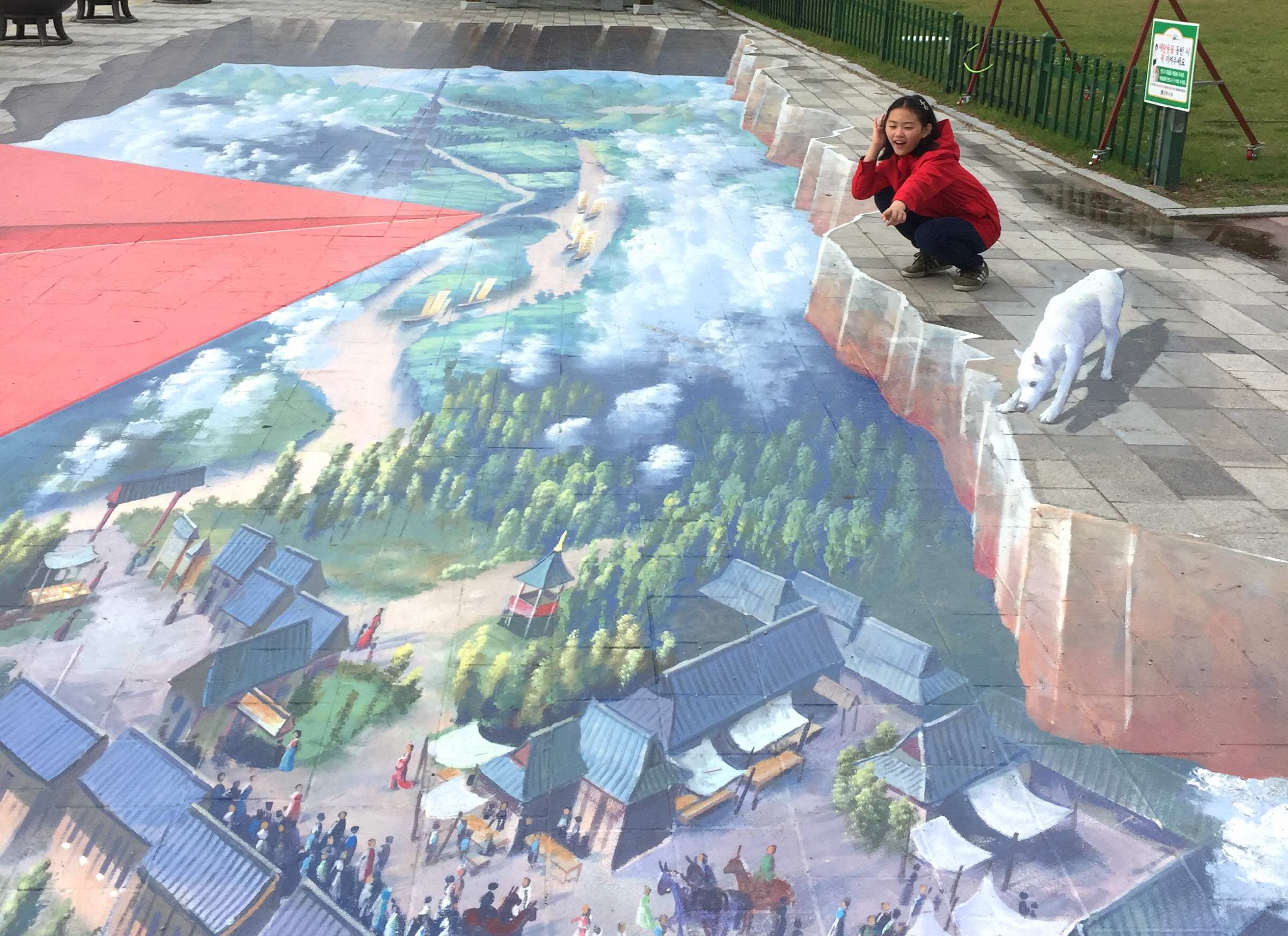 이번에 설치된 트릭아트는 ‘잃어버린 세계, 신라’를 주제로 마치 하늘에서 옛 신라 왕경 도시를 내려다 볼 수 있게 표현했으며, 세밀한 음영 처리와 원근법으로 높은 수준의 착시효과를 불러일으킨다.